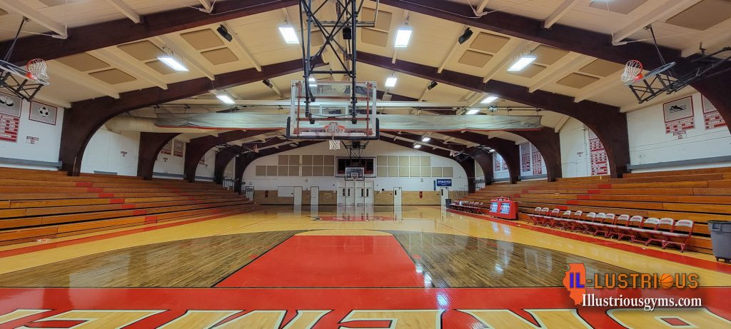 There are several other Illinois high schools that have this type of support system for their gyms, Alden-Hebron, Bremen in Midlothian, North Mac in Virden, Tinley Park, Eureka, and the former St. Joseph High School in Westchester which closed after the 2021 school year.