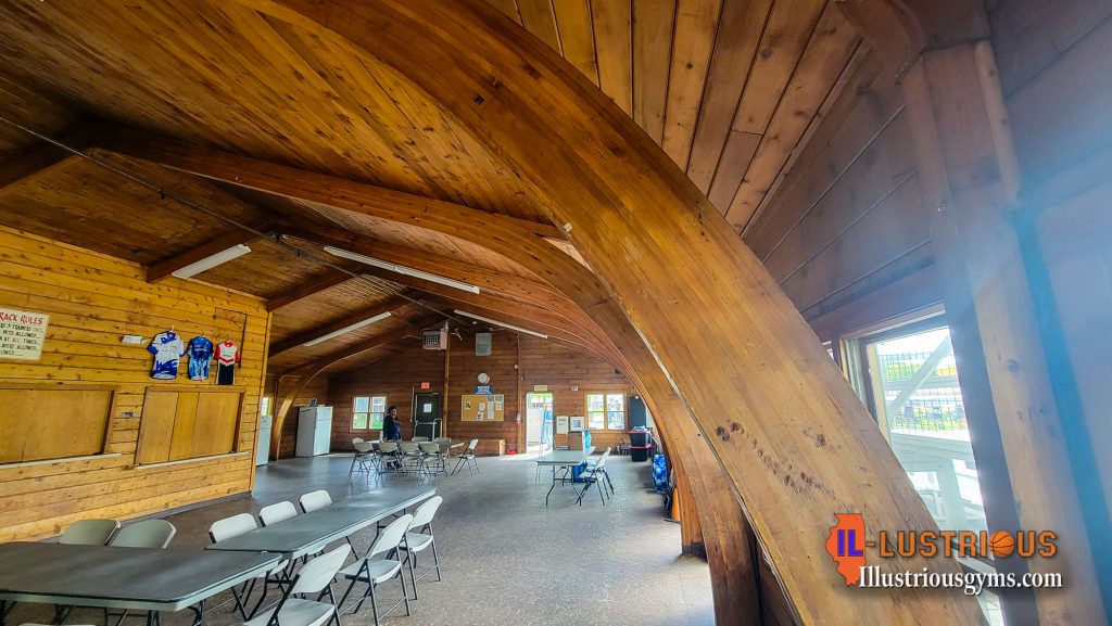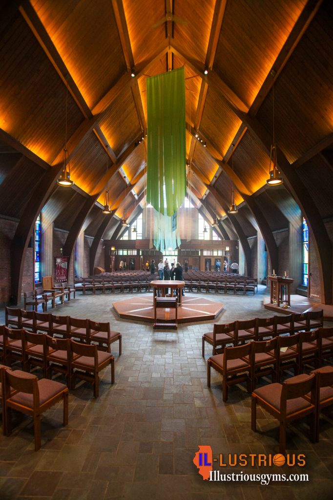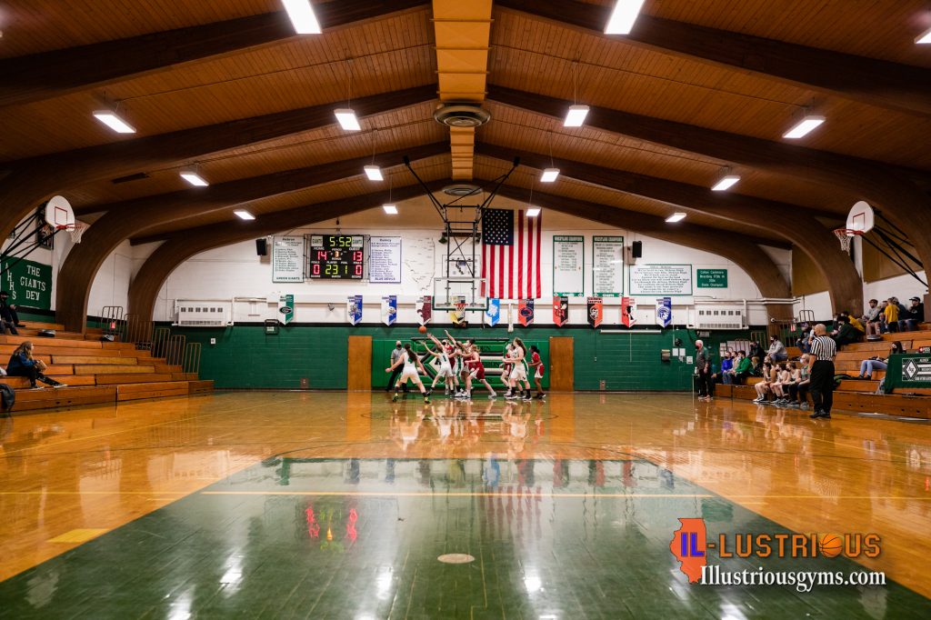 St. Joseph High School’s gym in Westchester was definitely more well known for its head coach Gene Pingatore, the winningest boys basketball head coach of all-time in Illinois, and its prominence in the movie Hoop Dreams. After that people will talk about the orange light sin the gym, but it was also a Glulam gym.